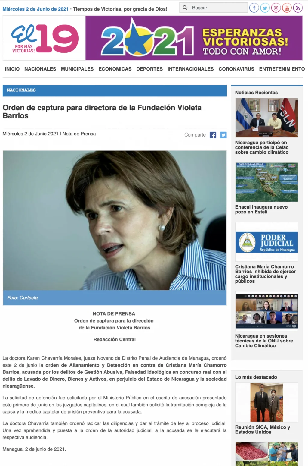 El proceso abierto contra Cristiana Chamorro no tienen que ser veraz para cumplir con el objetivo de fondo: inhibir a la posible candidata que más preocupa al régimen. Ya les platicaba aquí de como esto, además, le sirve para intimidar a la prensa independiente y la oposición en general. Y bueno, la investigación ni siquiera tiene que concluir, para que la inhibición de facto sea efectiva. La emisión de una orden de captura sucede apenas un día después de que Chamorro presenta una carta de intención ante CXL, apuntando a inscribirse como precandidata en el proceso iniciado por el partido.